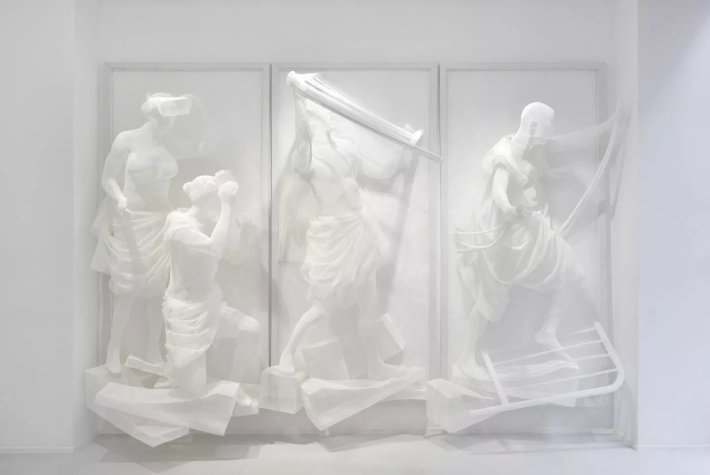 Triptyque, grillage plastique thermoformé / Triptych, thermoshaped plastic mesh