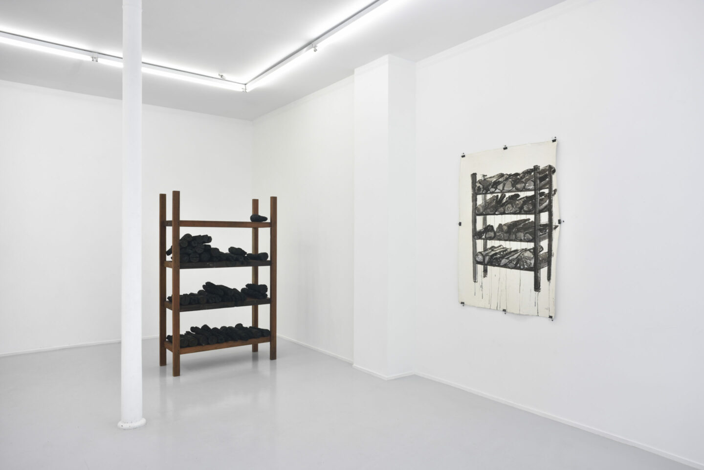 Charbon de bois et bois / Wood charcoal with wood 180 x 112 x 49 cm (70 7/8 x 44 1/8 x 19 1/4 in.) Fire Scripts, 2015